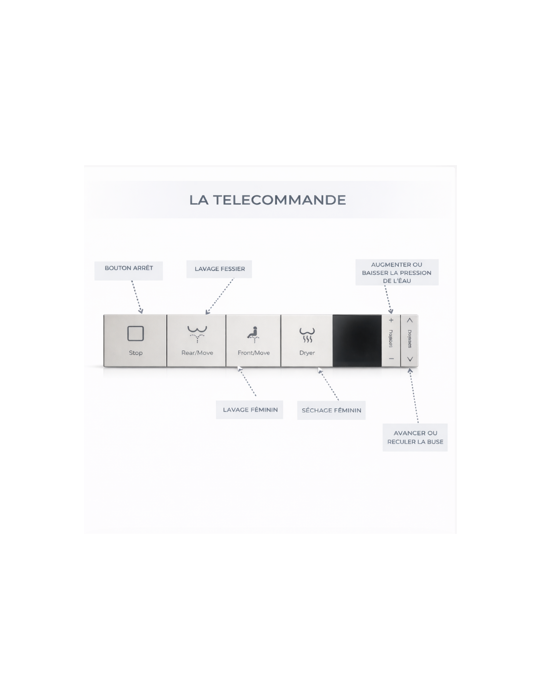 Le fonctionnement des wc japonais lavants ne peut être garanti en cas de dysfonctionnement lié au calcaire. En zone où la dureté de l'eau est supérieure à 15°f (TH), l'installation d'une solution anti-calcaire est fortement recommandée afin de préserver les performances et la durabilité du produit.