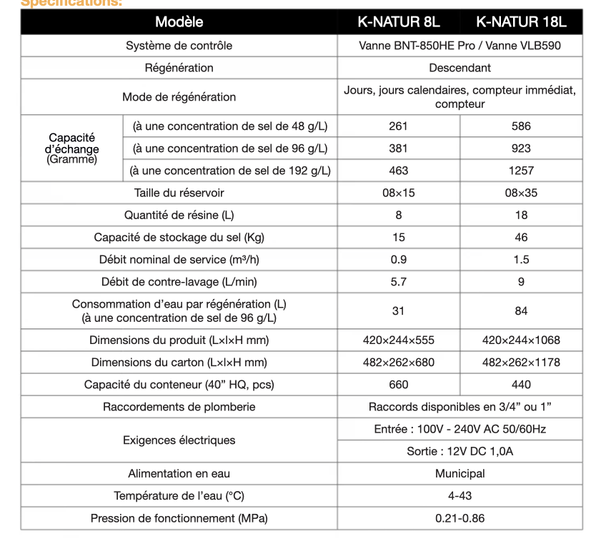 caractéristiques et fonctionnalités adoucisseurs K-NATUR