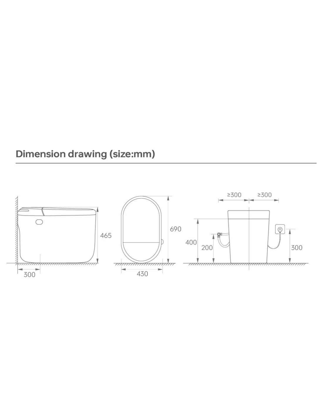 dessin dimension et croquis modèle wc japonais aquacube